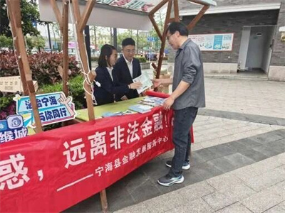 4月15日,宁海金融发展服务中心、宁海金融监管支局与农商行在县文明实践中心开展防范非法金融宣传活动,通过发放折页、现场讲解,普及金融安全知识,揭露非法集资等常见陷阱,引导群众增强风险意识,守护“钱袋子”。